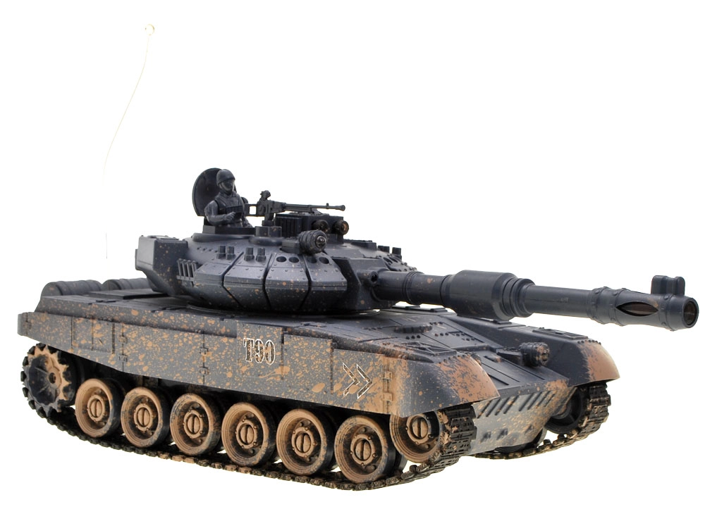 Открийте забавлението с реалистичния RC танк T-90. Благодарение на въртящата се кула, функцията за стрелба и цветното LED осветление на куполчето, изглежда страхотно по здрач. Многофункционалният контролер на честота 27 MHz дава пълен контрол – напред/назад, завиване, завъртане на място и управление на кулата.