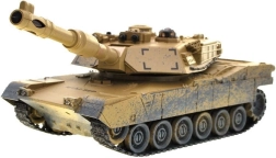 Реалистичният RC танк M1A2 ABRAMS в пустинна камуфлажна окраска предлага въртяща се кула до 180°, гумени вериги за сигурно движение и светлинни и звукови ефекти. Управлението е плавно благодарение на многофункционалния контролер 27 MHz, включени са зареждащ акумулатор и фигурка на танкист за още повече забавление.