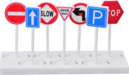 Включва 2 метални колички, хеликоптер, 7 пътни знака, стикери и голяма подложка с план на града.