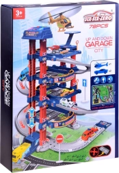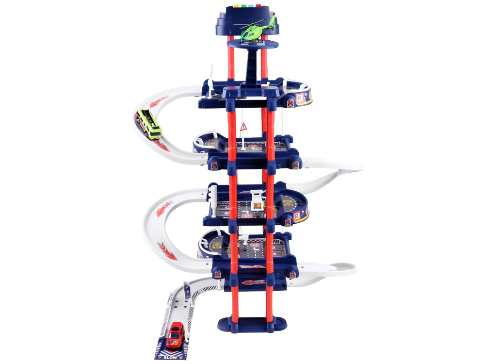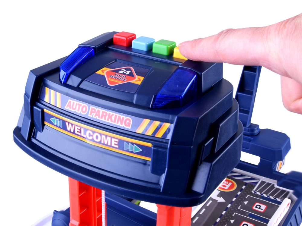 Този устойчив гаражен сет предлага на децата автентично забавление – от изкачването по спираловидните рампи до автоматичното преместване на колите с електрически асансьор между нивата. За атмосферата се грижат светлини и звуци (сирени на полиция, пожарна и линейка, запалване на двигателя, клаксон), които усилват реалистичното игрово изживяване.