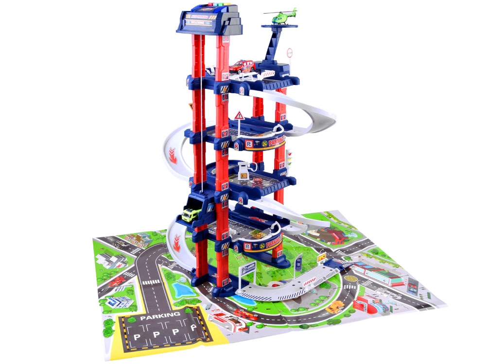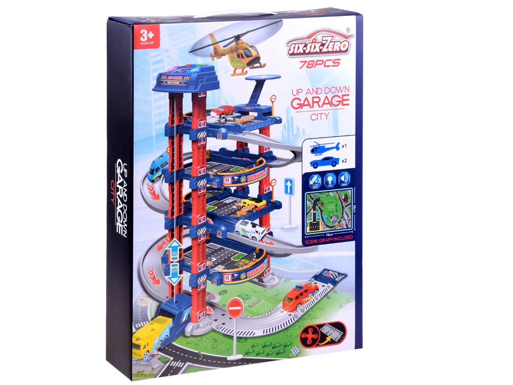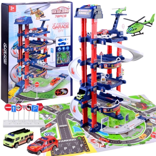 Открийте забавния свят на градския транспорт с този многоетажен паркинг сет с 4 нива, електрически асансьор и светлинни и звукови ефекти. В комплекта има подложка с план на града, 2 метални колички, хеликоптер и пътни знаци, които помагат на децата да развиват въображение и фина моторика. Играчката е подходяща от 3 години и предлага реалистично изживяване при шофиране и паркиране.