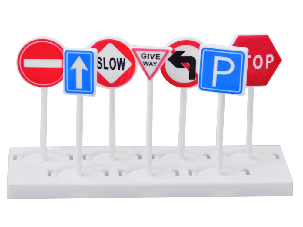 - 2 метални колички, хеликоптер, 7 пътни знака, стикери, подложка с град