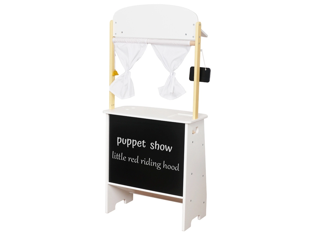 Затварящите се стени и завеси превръщат щанда в куклен театър. Децата могат да разказват истории, да укрепват самочувствието си и да развиват креативността.