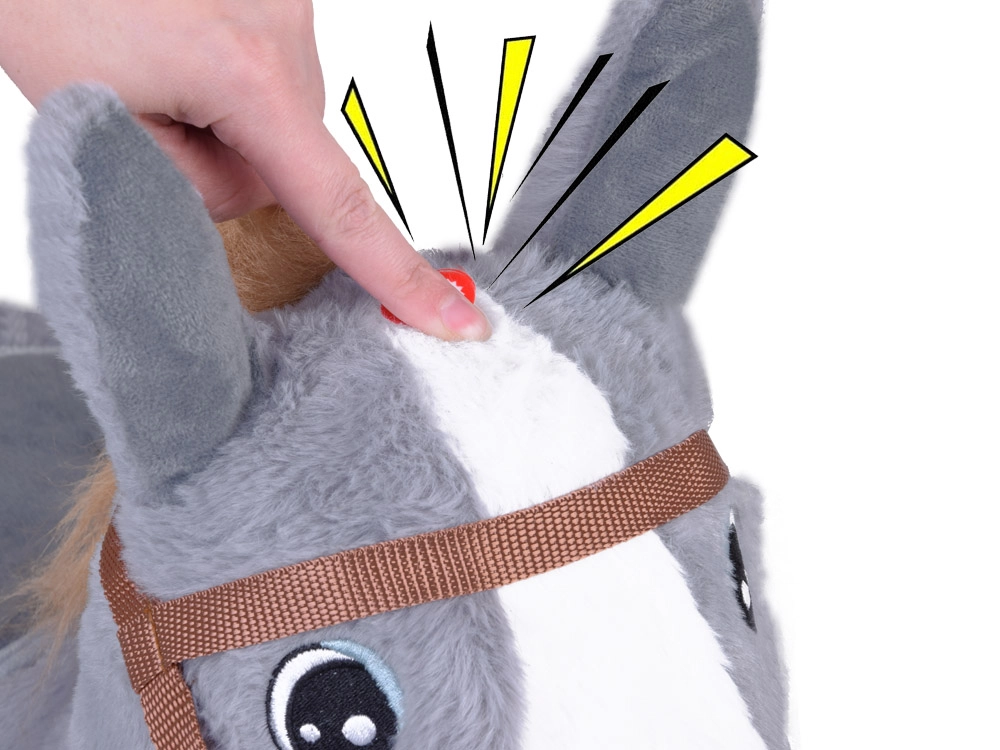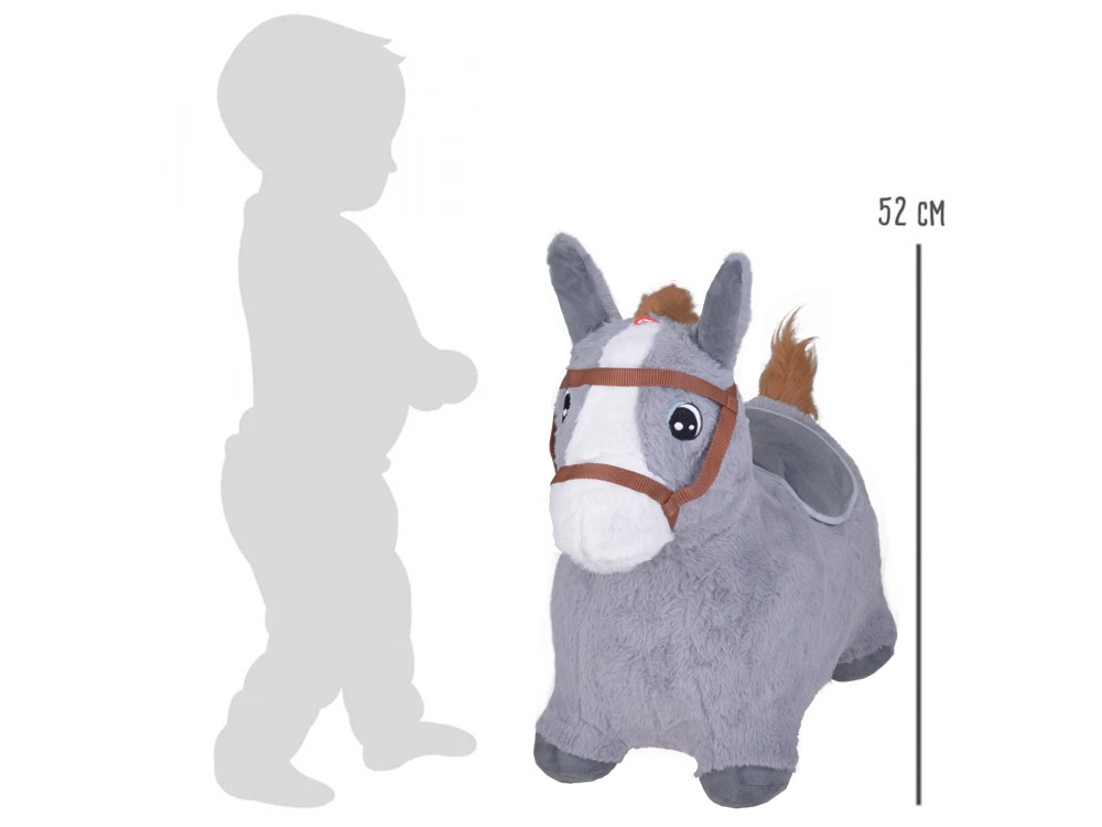 Плюшовото подскачащо конче JOKOMISIADA е идеален спътник за активна игра у дома и в двора. Меката, приятна на допир повърхност в комбинация със здрава конструкция дава на децата комфорт и увереност при подскачане. Благодарение на практичните захвати във формата на уши и забавното свирче между тях, децата ще се радват на часове безопасно забавление.