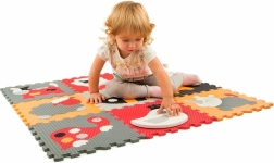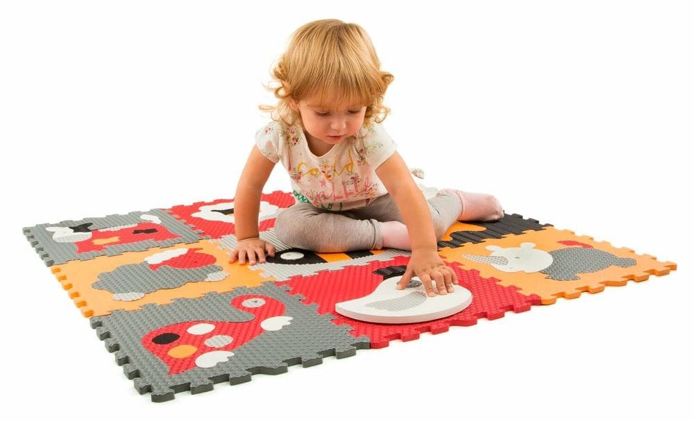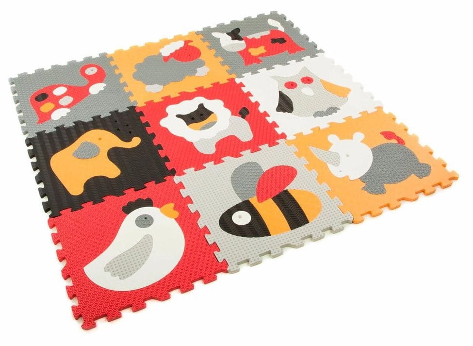 Пъзелът от пяна с животински мотиви в комбинация от сиво и червено е чудесен избор като игрово килимче за детска стая или всекидневна. Отделните картинки се състоят от пет до осем изваждащи се части, така че децата упражняват фината моторика и логическото мислене. Подложката е мека, безопасна, лесна за поддръжка и благодарение на изолационните свойства защитава от студа на пода.