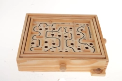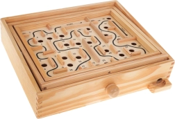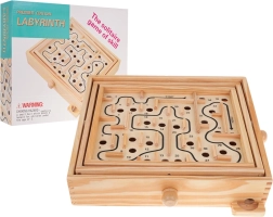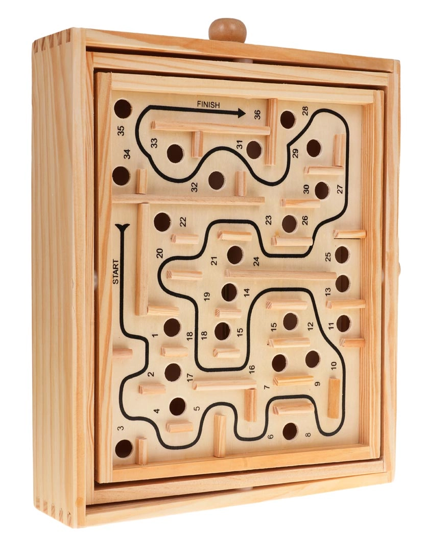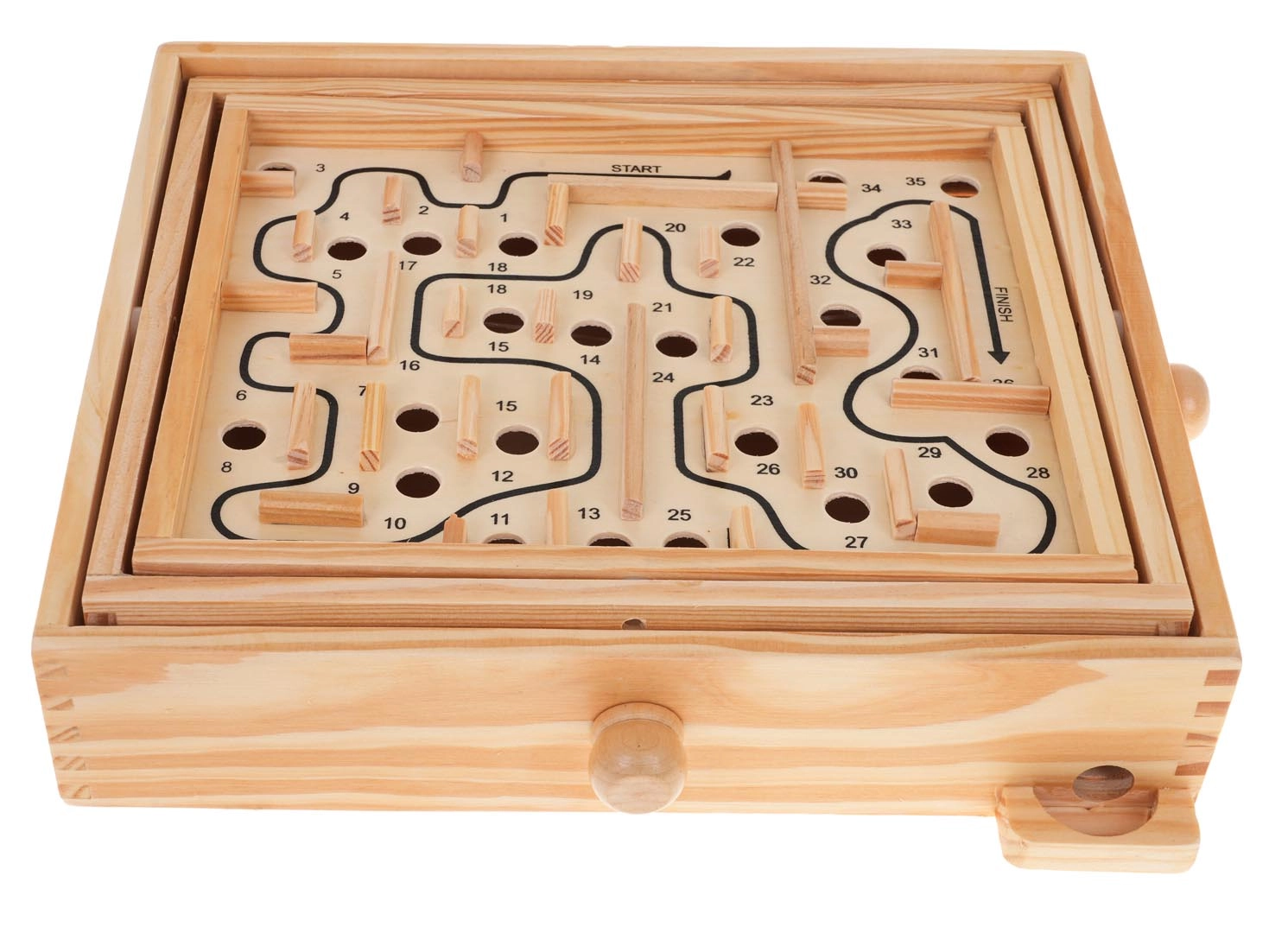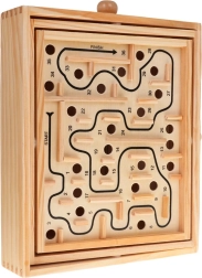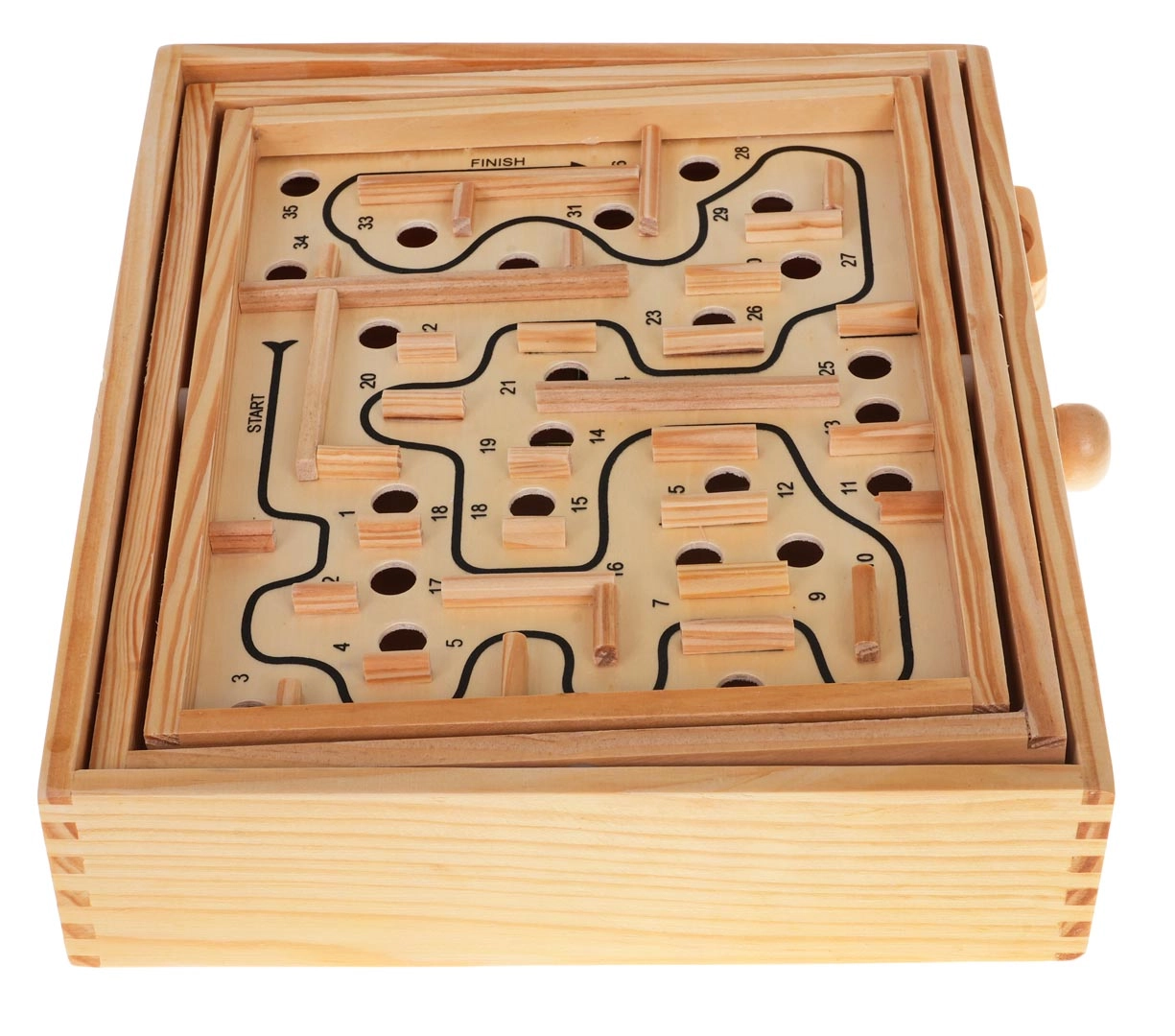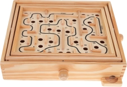 Потопете се в света на забавлението с дървената игра Лабиринт, която предлага уникално игрово изживяване и едновременно развива уменията. Тази игра е проектирана да стимулира концентрацията и координацията око-ръка. С помощта на въртящите се копчета отстрани можете лесно да накланяте игралната дъска и да насочвате топчето.