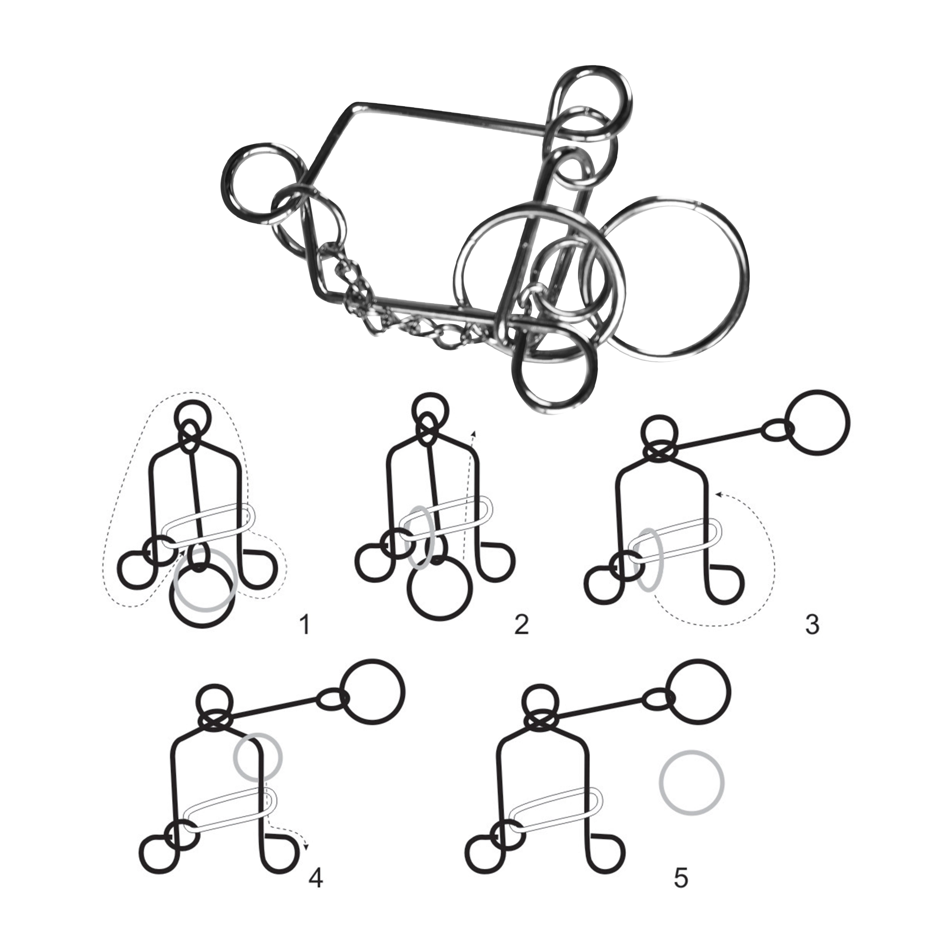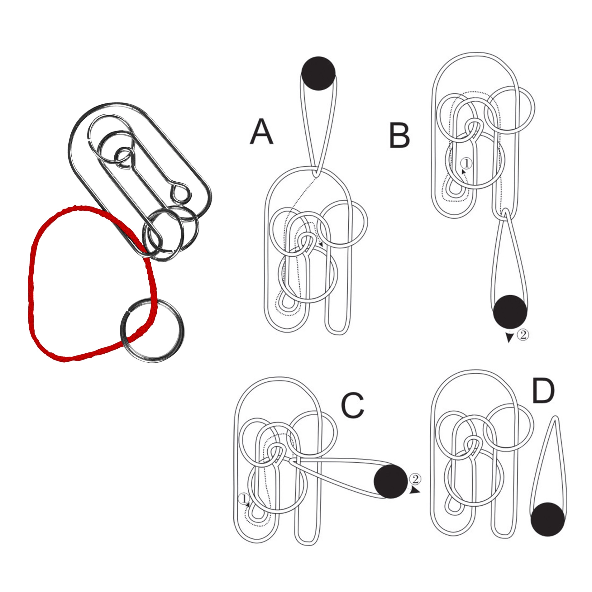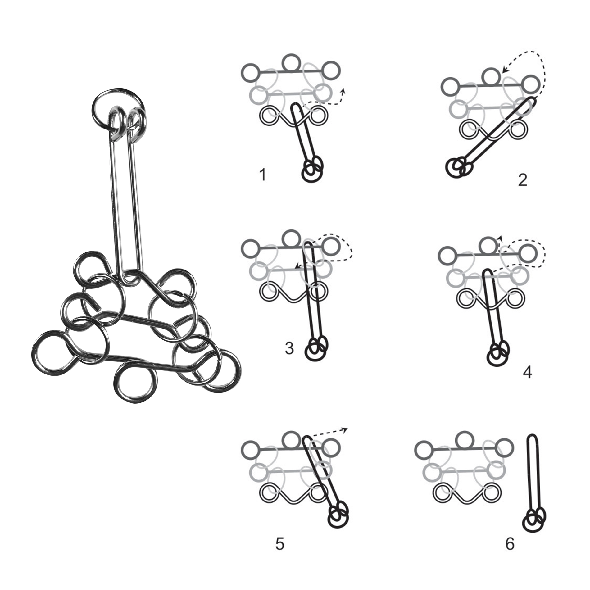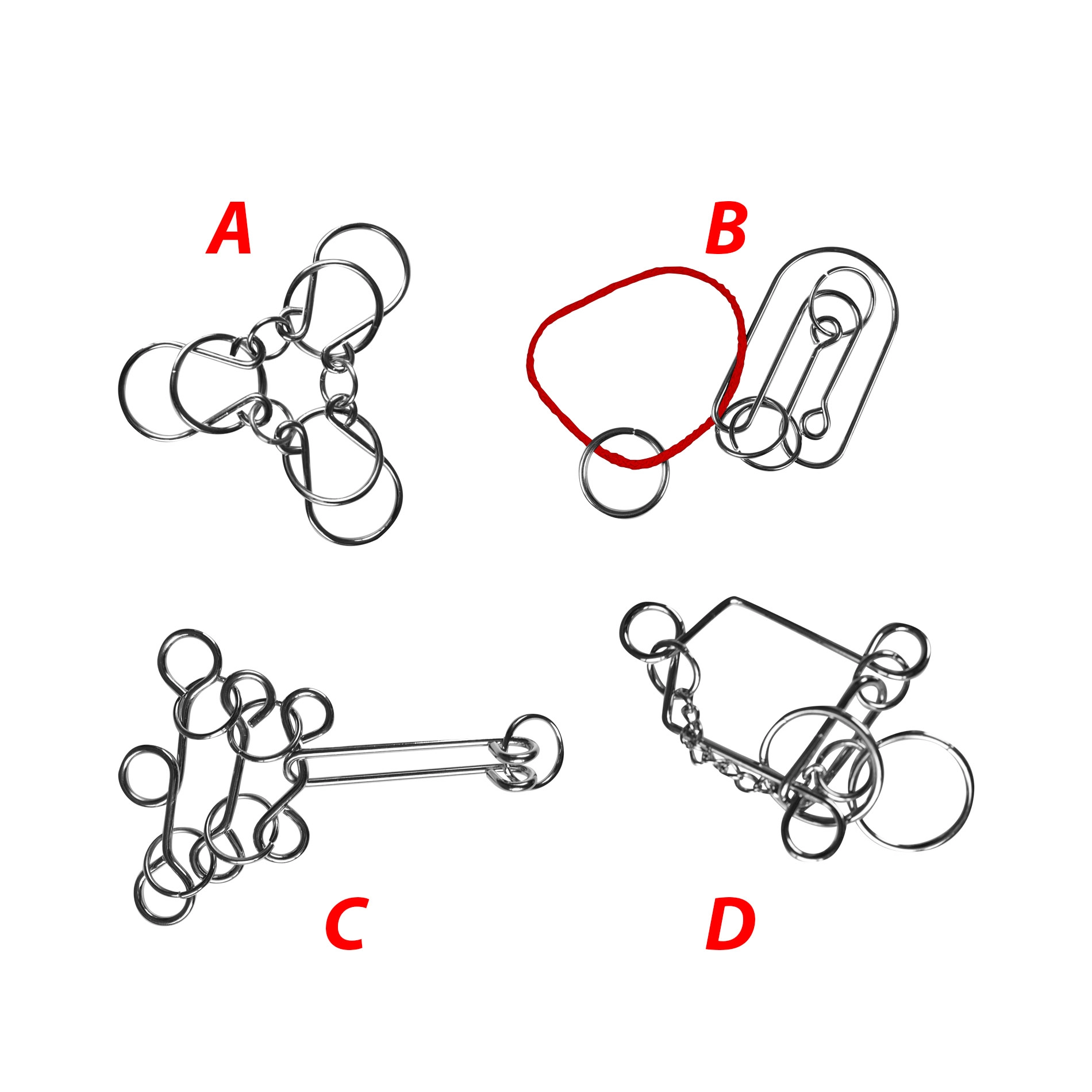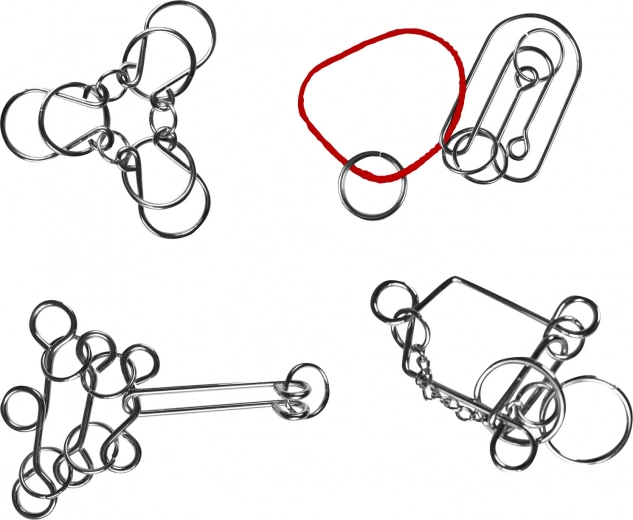 Този комплект съдържа четири уникални метални главоблъсканици, които ще изпитат вашето логическо мислене и фината моторика.