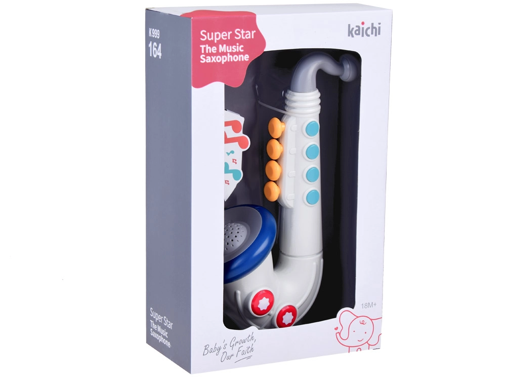 Играта на саксофон подпомага не само моторната координация, но и дава на децата възможност да се изразяват чрез музика и да развиват слуховите си способности. Благодарение на атрактивния дизайн, подходящите размери и леките материали този инструмент е лесен за управление за деца от 18 месеца.