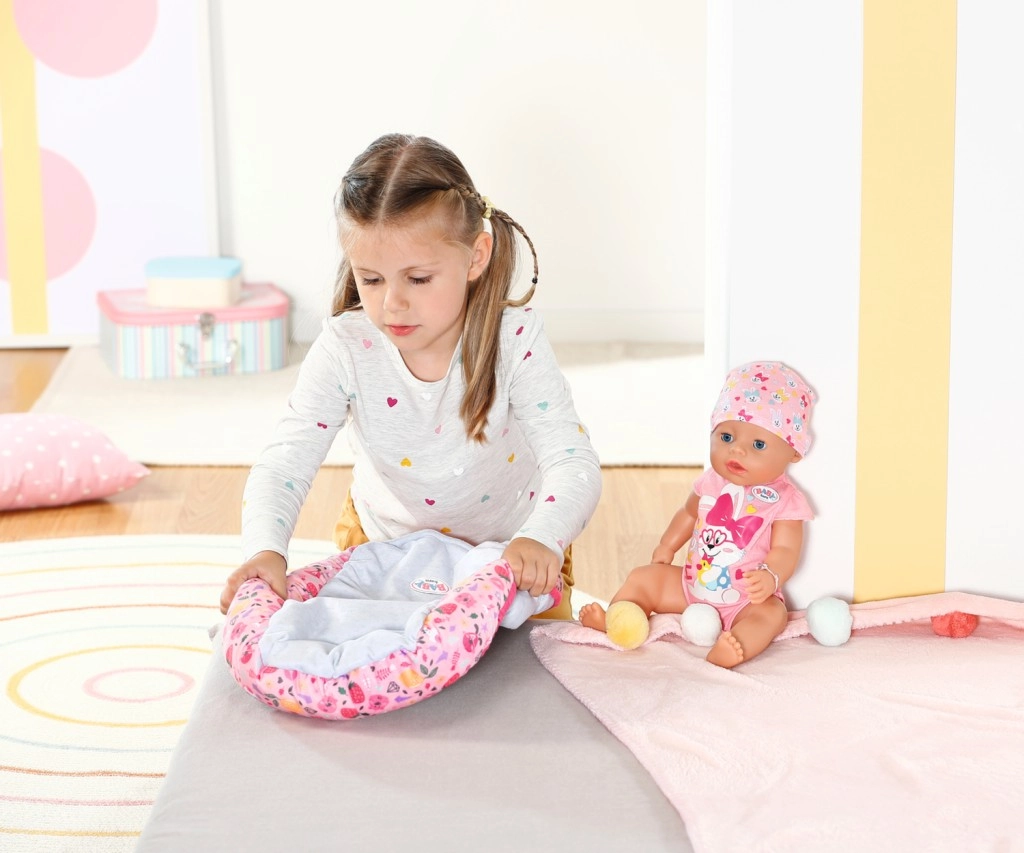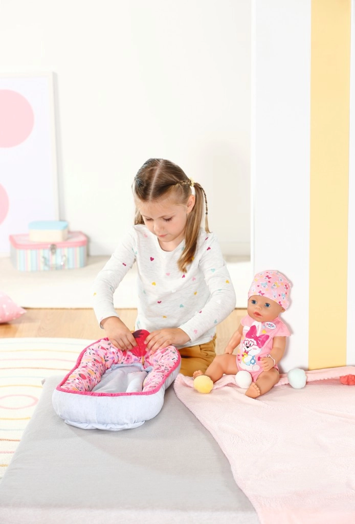Открийте чара на игривото и удобно гнездо за кукли BABY born. Изработено е от мек материал и е украсено с цветни мотиви, които привличат детското внимание.