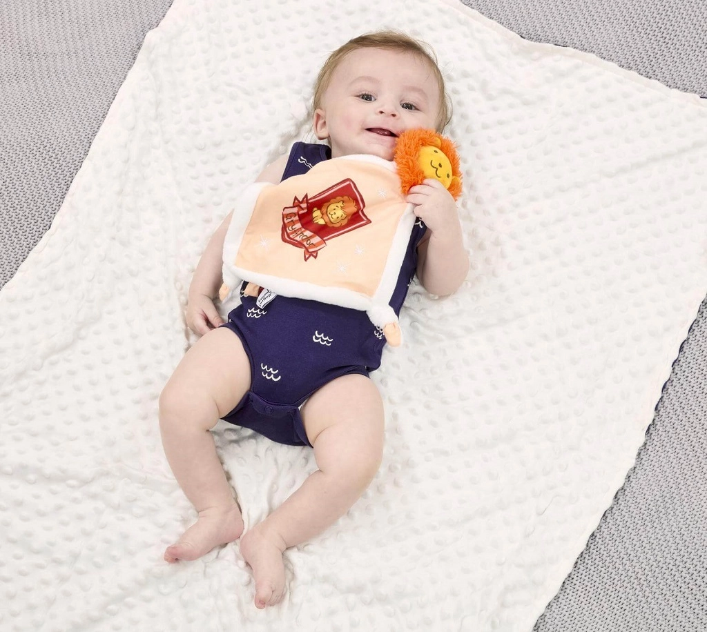Открийте магическия свят с гушкалчето Грифиндор, което дарява бебето с чувство за безопасност и комфорт по време на сън и почивка. Нежният хипоалергенен плюш е щадящ към чувствителната детска кожа, а атрактивните текстури (етикетчета, възелчета) подпомагат развитието на фината моторика и сетивата.