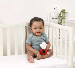 Леката и мека дрънкалка е идеална за у дома, за количката и за разходки – винаги под ръка за спокойствие и забавление.