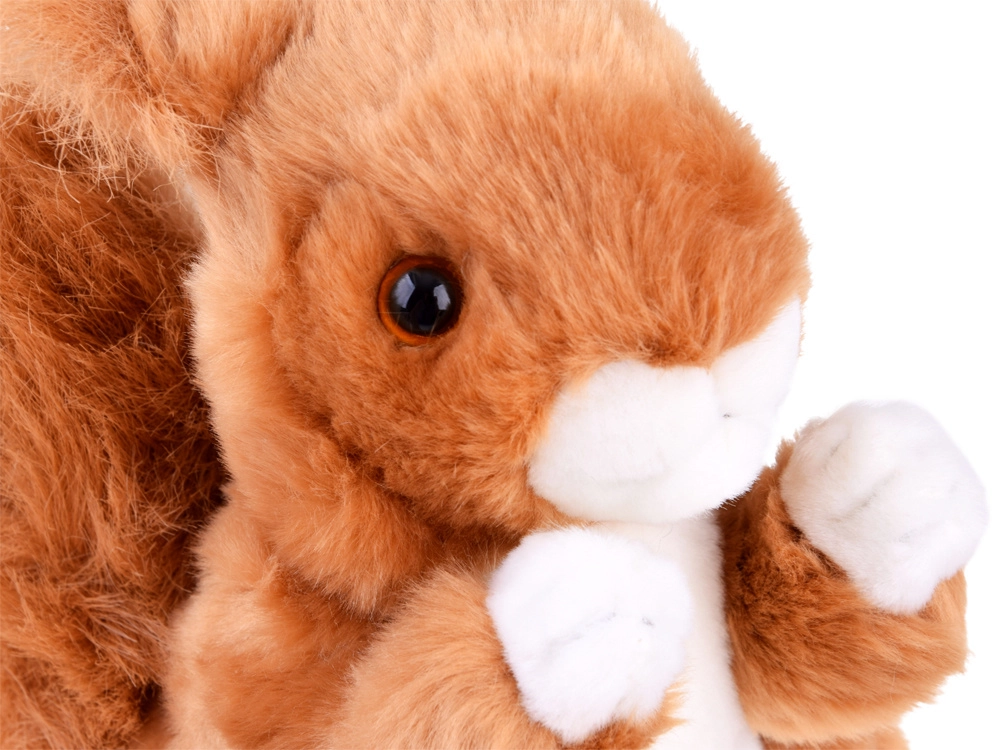 Детайлната изработка, изразителните очи и пухкавата опашка придават на катерицата жив израз. Мекият плюш е приятен за гушкане и безопасен за деца.