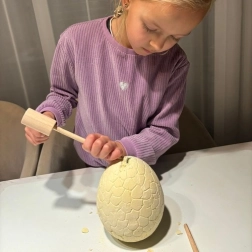 В комплектa са включени динозавърско яйце и дървени инструменти за разкопки, които гарантират забавна и практическа игра.