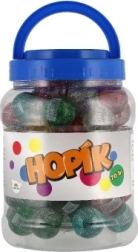Това топче е изработено от качествена пластмаса, която му придава издръжливост. С блестящата си повърхност в шест различни цвята носи визуално удоволствие при всеки скок.