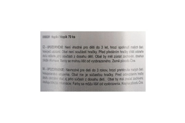 В комплектa има 70 броя в различни цветове, всеки с размер 3,2 см. Тези малки чудеса носят радост на деца от 3 години нагоре, както при самостоятелна игра, така и с приятели.