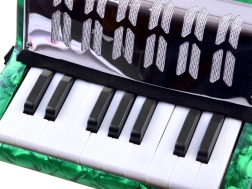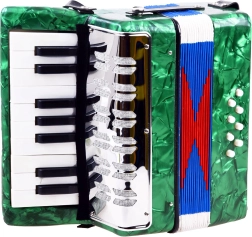 Този детски акордеон Harmonia е прецизно и естетически изработен, за да предложи автентично музикално изживяване. Принципът на свирене е същият като при истински акордеон – звукът се създава чрез разпъване и сгъване на мяха при едновременно натискане на клавиши и бутони. Чистите и приятни тонове мотивират децата да продължат да откриват света на музиката.