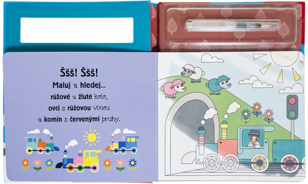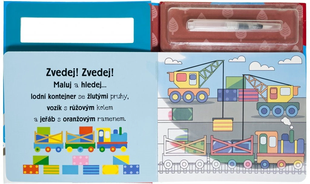 Насладете се на рисуване без бъркотия с многократни книжки за оцветяване. Нужни са само вода, четка и вашето дете ще открие скритите изображения на влакове и мощни машини.