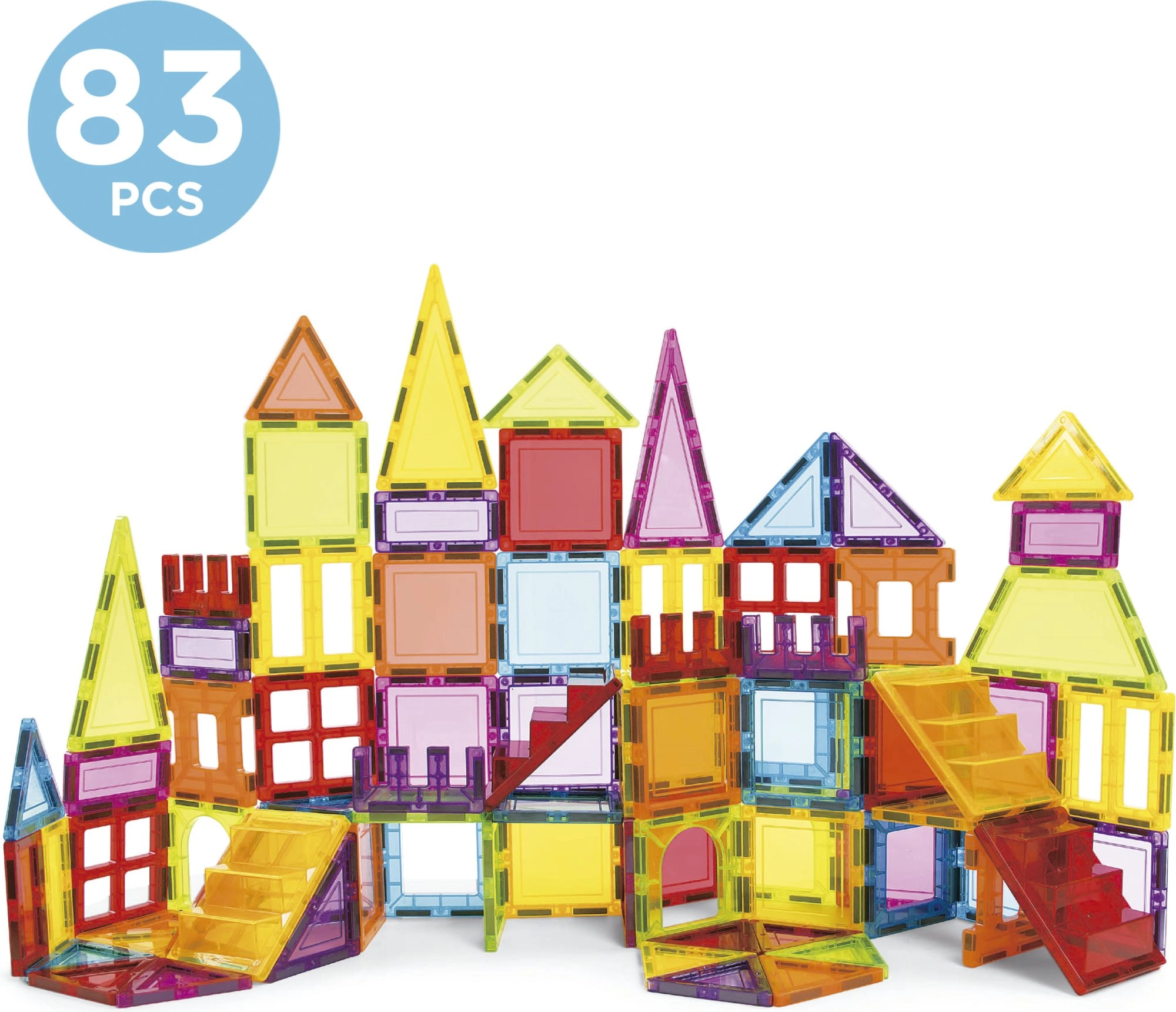 Комплектът съдържа 83 части, които служат за създаване на множество триизмерни конструкции според вашите идеи.