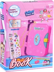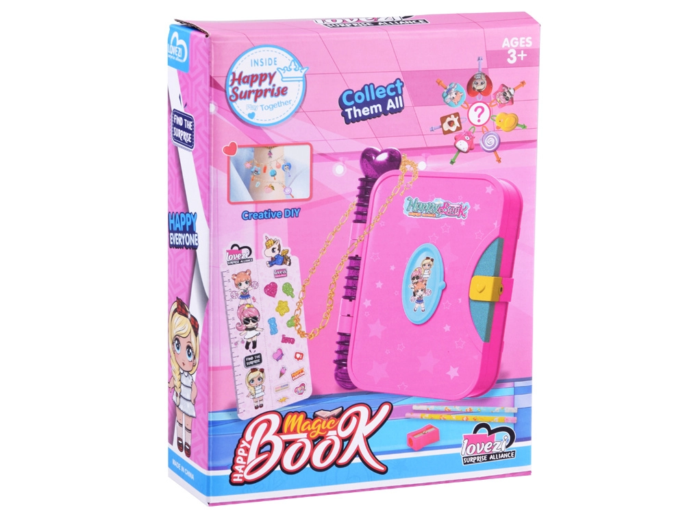 Дневникът HAPPY MAGIC BOOK превръща ежедневното записване и съхраняване на дребни неща във вълшебна игра. Децата ще откриват тайни отделения, ще търсят ключове, скрити на неочаквани места и ще съхраняват безопасно най-ценните си съкровища. Издръжливата пластмасова „книга“ с мили мотиви на принцеса и еднорог е идеална за малки любители на тайните и творчеството.