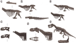 Използвайте чукче, длето и четчица, внимателно разкривайте съдържанието и открийте цветни минерали и скелет на Т‑REX. След това сглобете скелета в декоративен модел.