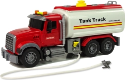 Тази червено-бяла цистерна ще зарадва всеки малък шофьор. Благодарение на горния пълнещ отвор резервоарът лесно се пълни с вода, а с бутона на резервоара се стартира реалистично пръскане на вода от маркуча. Светлинните маяци и звуците (клаксон, старт на двигателя, заден ход) придават автентичност на играта.