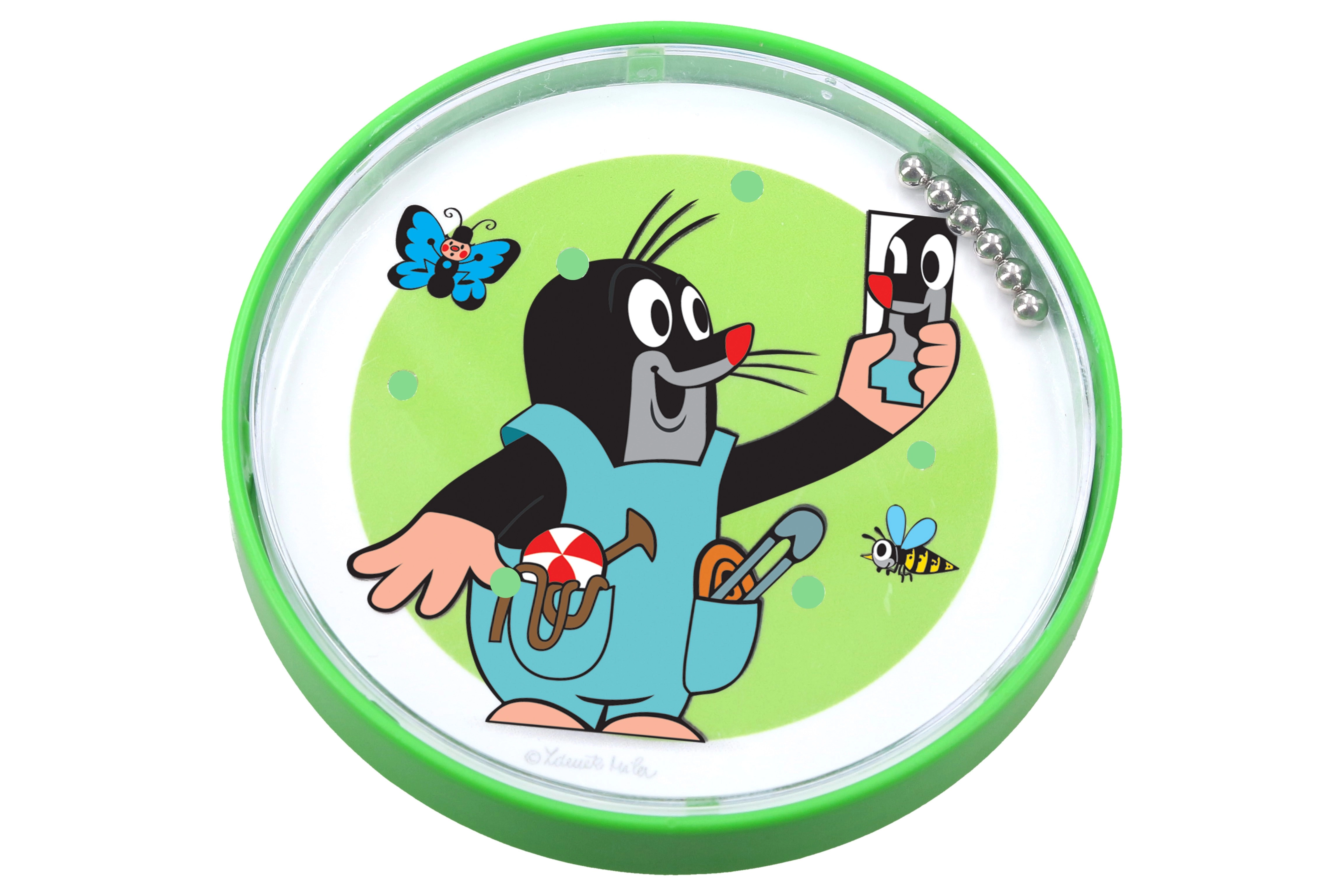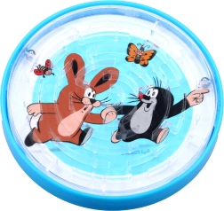 Забавен джобен пъзел с мотив на КРЪТЧО и приятелите му развива фината моторика, търпението и координацията око-ръка. Лек пластмасов лабиринт с диаметър 9 см – достатъчно е да го накланяте и да водите топчетата до целевите места – идеален за път, чакалня или спокойни моменти у дома.