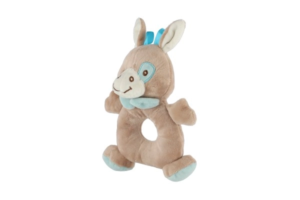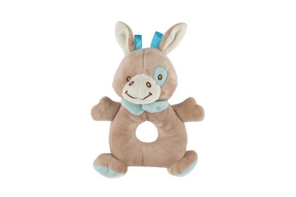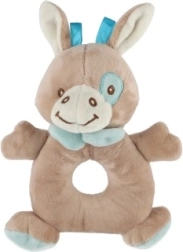 Тази лека и удобна дрънкалка за бебета съчетава мек плюш с добре обмислена форма. Магаренцето с централен отвор се държи отлично от децата и подпомага развитието на фината моторика и сетивното възприятие. Неутралната кафяво-светлосиня цветова комбинация е чудесен избор както за момиченца, така и за момченца.