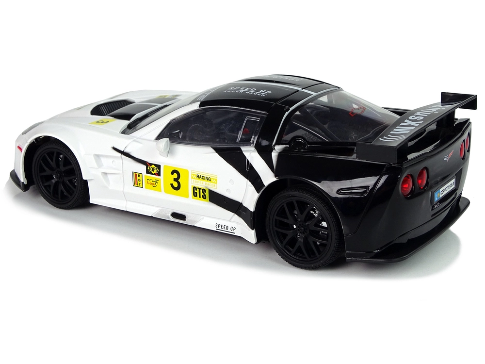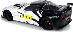 Този детайлно изработен състезателен автомобил в мащаб 1:18 впечатлява с верни пропорции, спортни декали и работещи светлини. Благодарение на честотата 2.4 GHz ще се радвате на стабилна връзка дори при каране с няколко модела едновременно. Бяло-черната цветова схема с жълти акценти подчертава агресивния вид на автомобила.