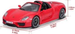 Всеки елемент на модела Bburago Porsche 918 Spyder е прецизно изработен, за да се доближи максимално до истинския автомобил. От вентилационните отвори до колелата с реалистични гуми.