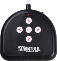 Контролерът работи на стабилна честота 27 MHz и предлага пълен контрол върху движението – напред, назад, завои надясно/наляво и ефектен 360° спин. С натискане на бутона DEMO тарантулата сама демонстрира триковете си. Играчката се доставя в естетична кутия, която я предпазва по време на транспортиране.