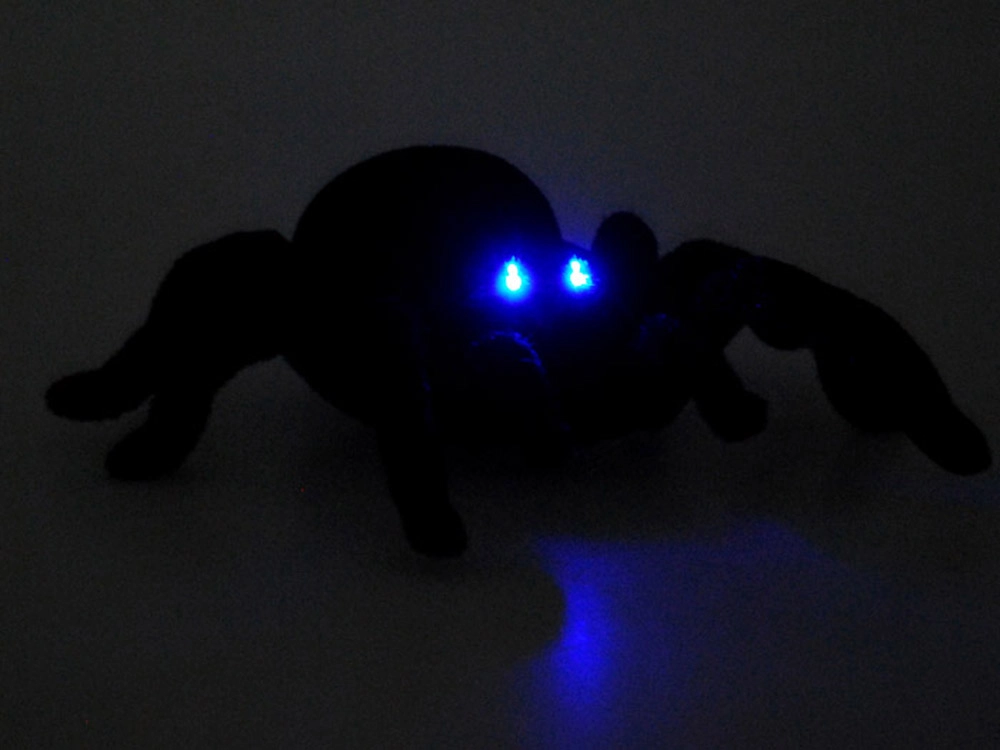 Черно-оранжевата окраска с пухчета правдоподобно наподобява истинска тарантула. Синьо светещите очи засилват „страшния“ ефект при всяка игра.
