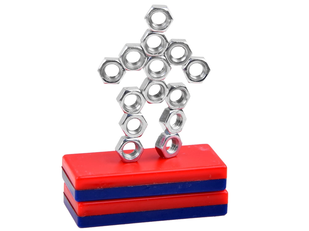 Създавайте фигурки и форми от метални гайки, закрепени към магнитни пръчки – забавна демонстрация на силата на магнита и баланса.