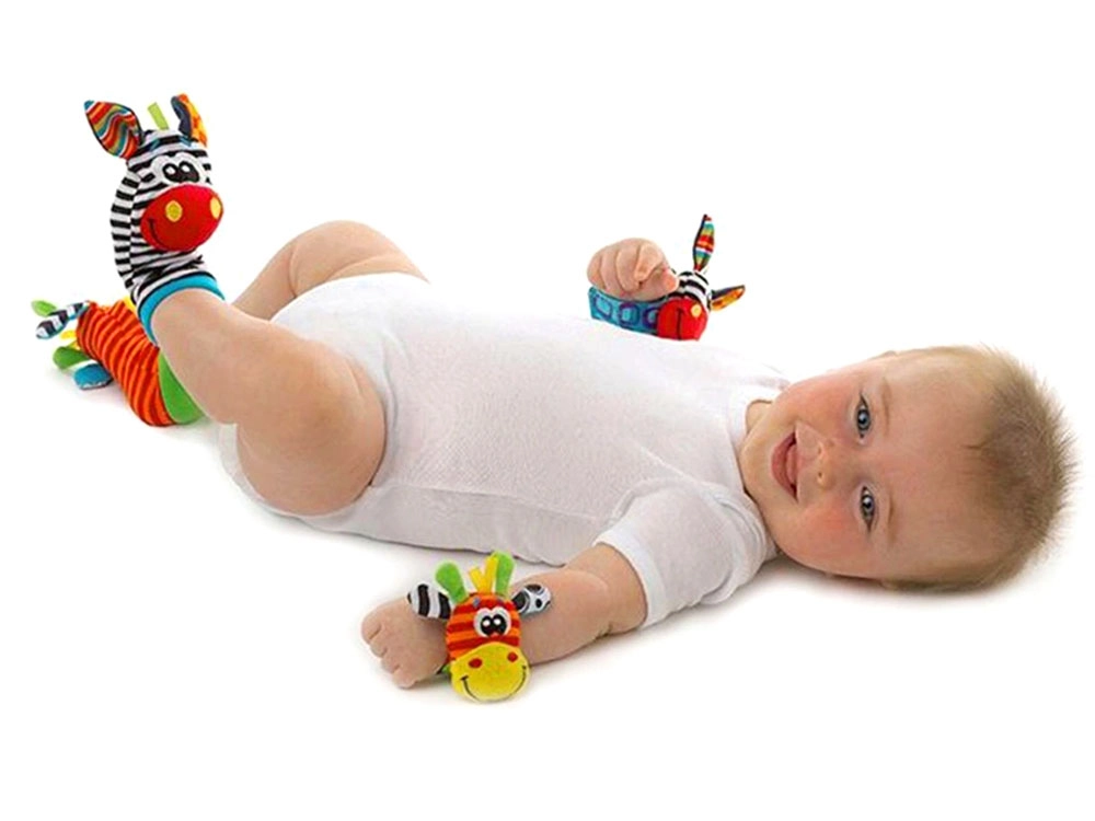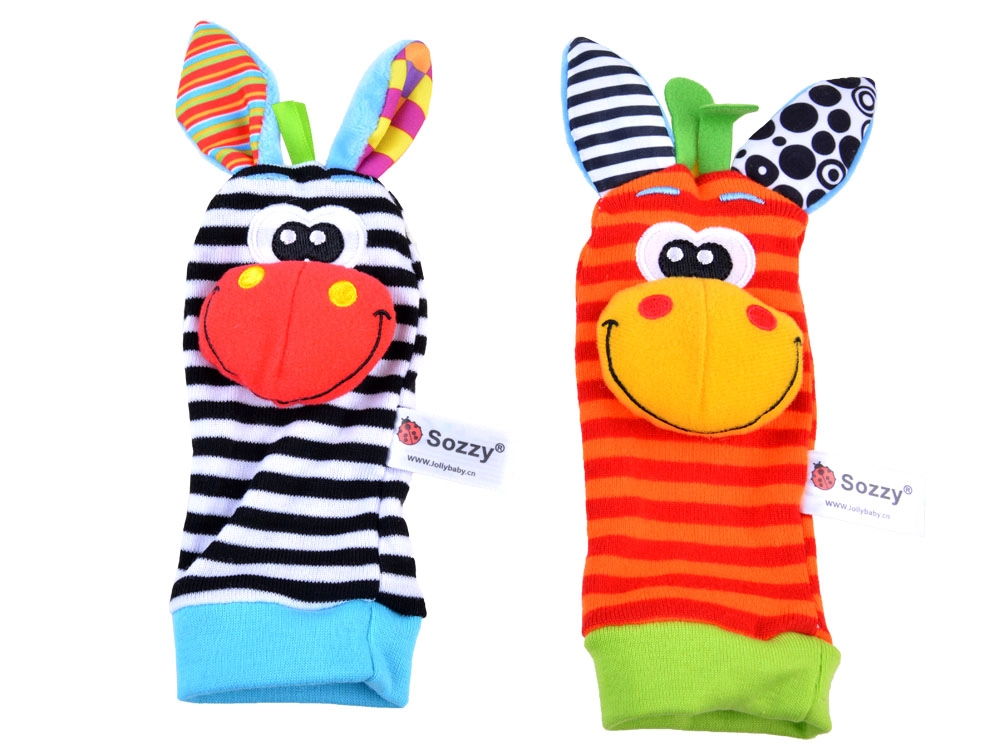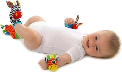 Дрънкащите чорапки и гривни насърчават ритането и махането с ръчички, с което естествено подпомагат моториката и координацията на движенията.
