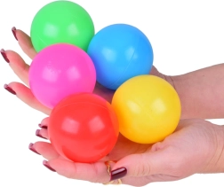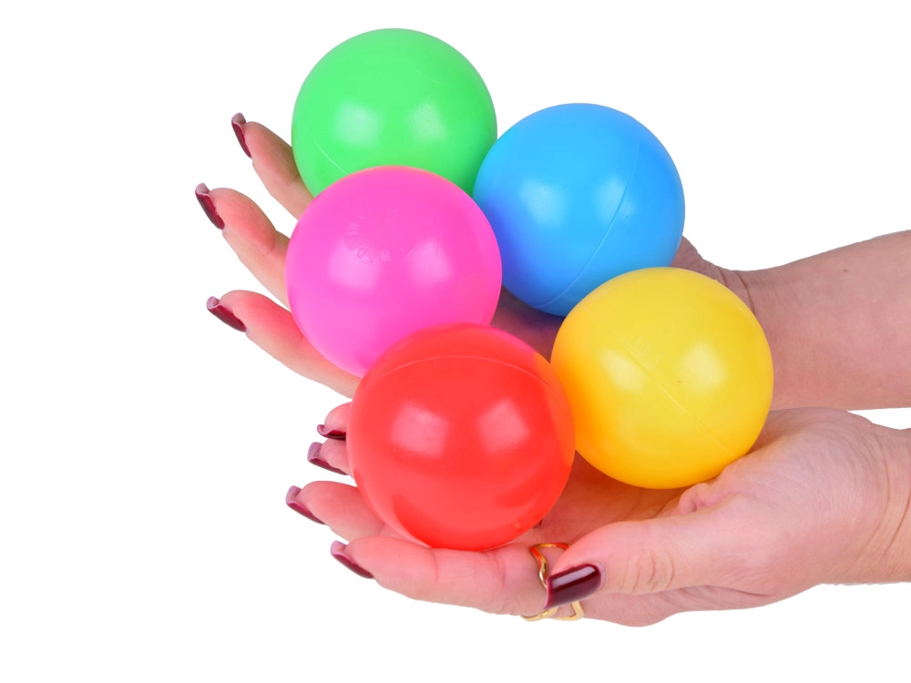 Внесете експлозия от цветове и радост във вашия детски кът или басейн с този комплект цветни пластмасови топки. Всяка топка е с диаметър 6 см, лека и издръжлива, идеална за безопасна игра. Изработени от материал, който лесно възстановява първоначалната си форма след стискане, което ги прави перфектни за детска игра.