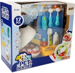 В комплекта са включени светещо зъболекарско огледалце (светлината се активира с бутон), пинсети, две „бормашинки“, четка за зъби и „паста“. Децата могат да изваждат „болни“ зъбки на кученцето и да пробват лечение на кариеси – в отвора може да се постави картончето с бонбон/шоколад и след това внимателно да се извади с пинсетата, без да се дърпа целият зъб.