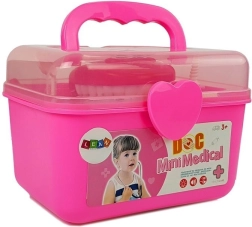 Всичко е съхранено в здраво пластмасово куфарче с удобна дръжка, така че комплектът лесно се пренася на път и при баба и дядо. Играта развива фината моторика, въображението и общуването между малкия лекар и пациента.