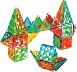 Открийте радостта от творческото конструиране с прозрачни квадрати и триъгълници с лъскава фасетна структура. Магнитните ръбове се съединяват интуитивно, така че и малките ръчички лесно изграждат стабилни кули, ракети и други фантазни обекти – без сложно щракване.