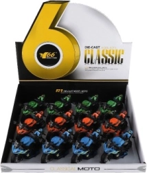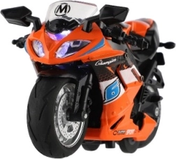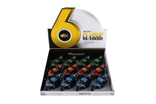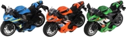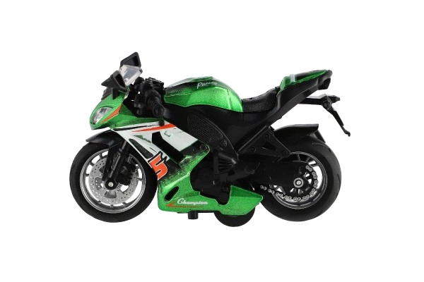 Този състезателен мотор е предназначен за деца от 3 години и предлага реалистични детайли в три различни цвята. Размерите му са 12 x 7 x 6 cm и е изработен от комбинация от метал и пластмаса.