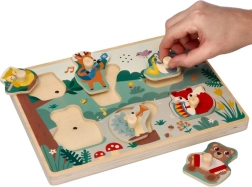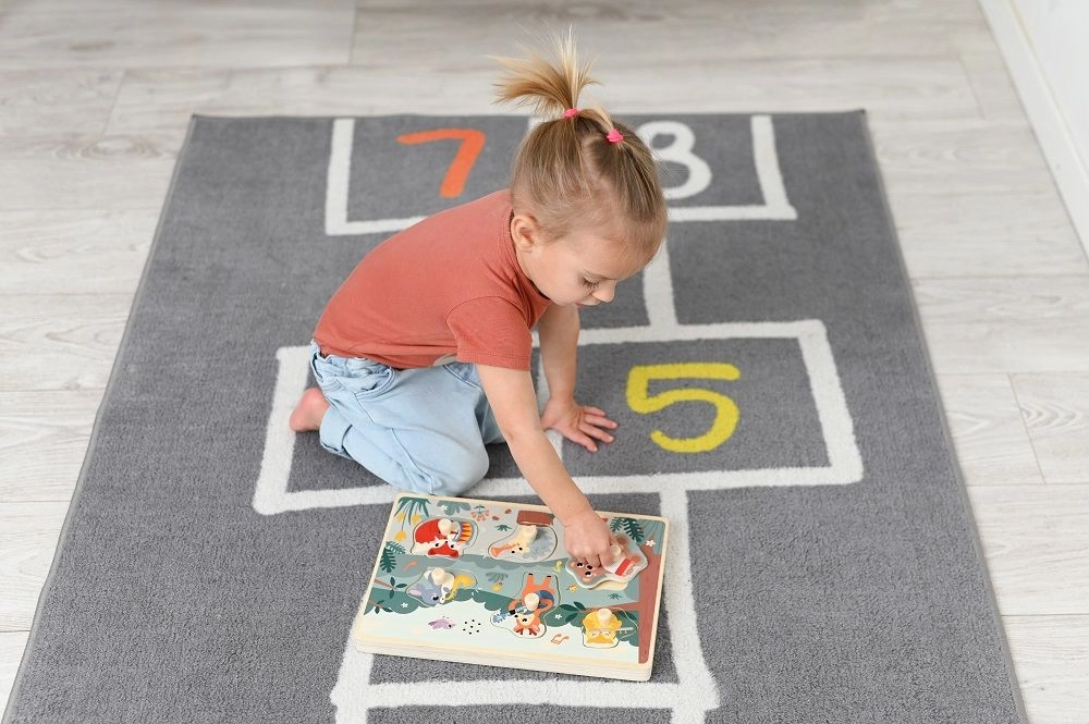 Качествена дървена дъска с цветни илюстрации и гладки ръбове е издръжлива и безопасна. Чудесна за самостоятелна и споделена игра на под или килим.