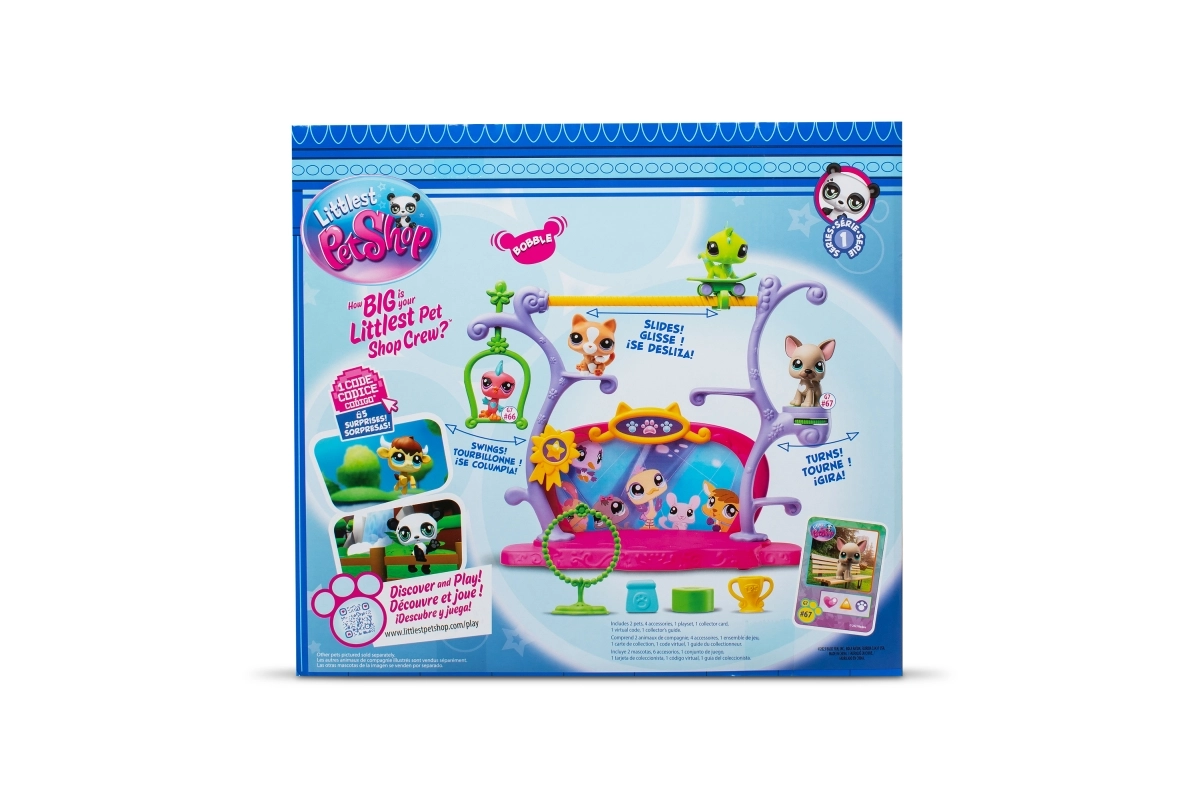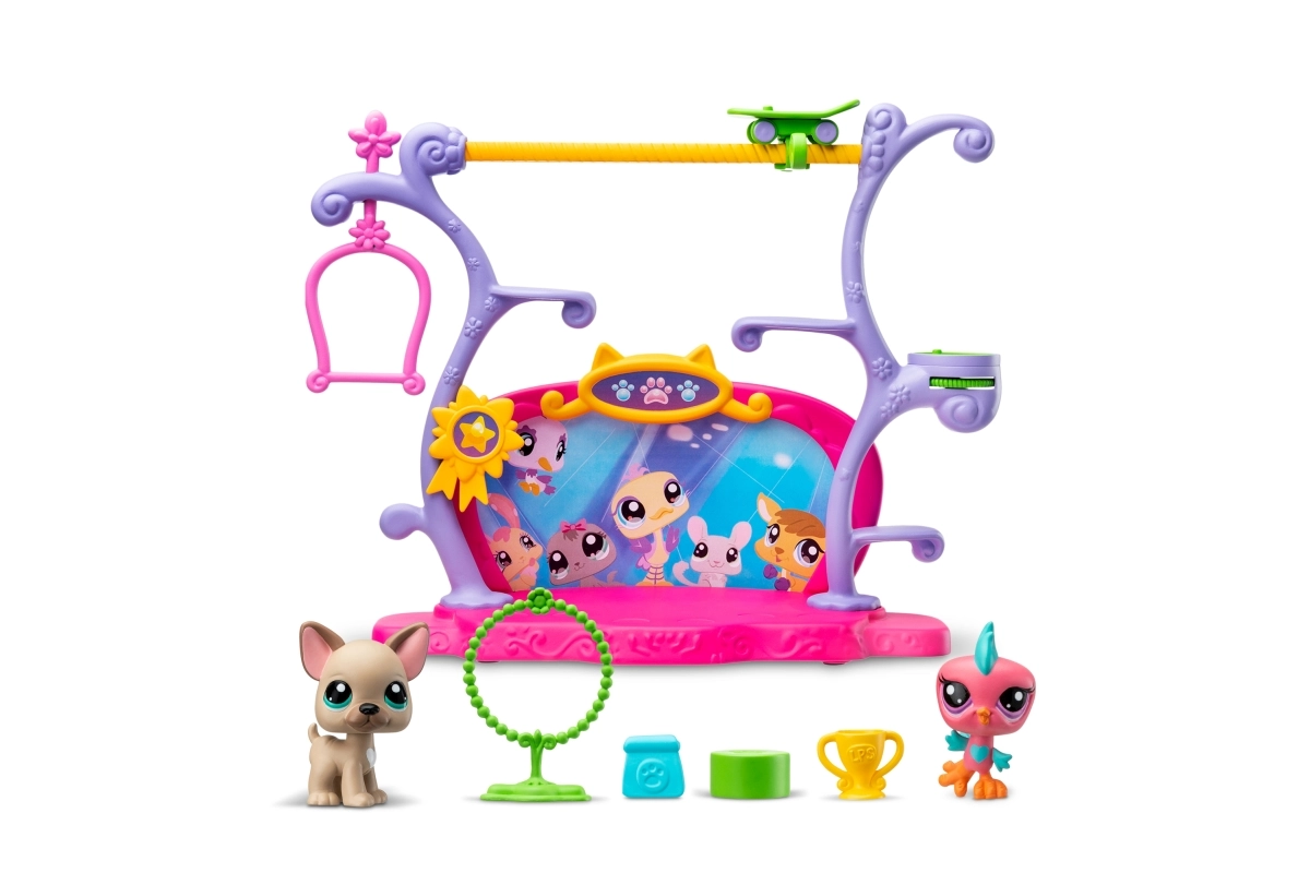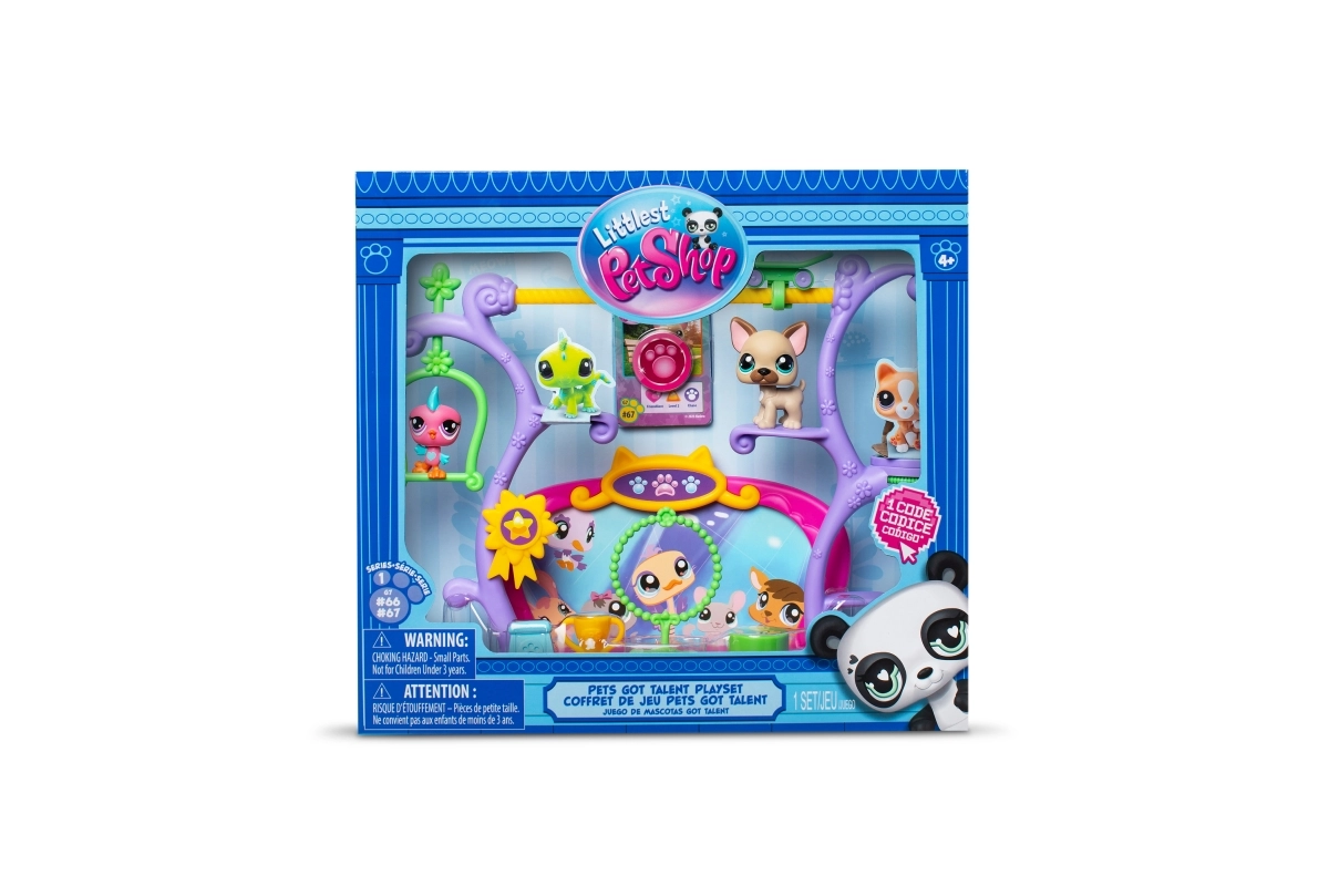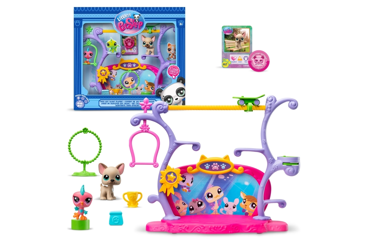 Добре дошли, фенове на любимите животинки Littlest Pet Shop! Идва Поколение 7 с повече от 65 нови приятели в колекцията. Този игрови сет включва френски булдог и птиче, готови за шоуто на талантите. Присъединете се към виртуалния свят на Littlest Pet Shop благодарение на специалния код, който отключва ексклузивни фигурки и изненади.