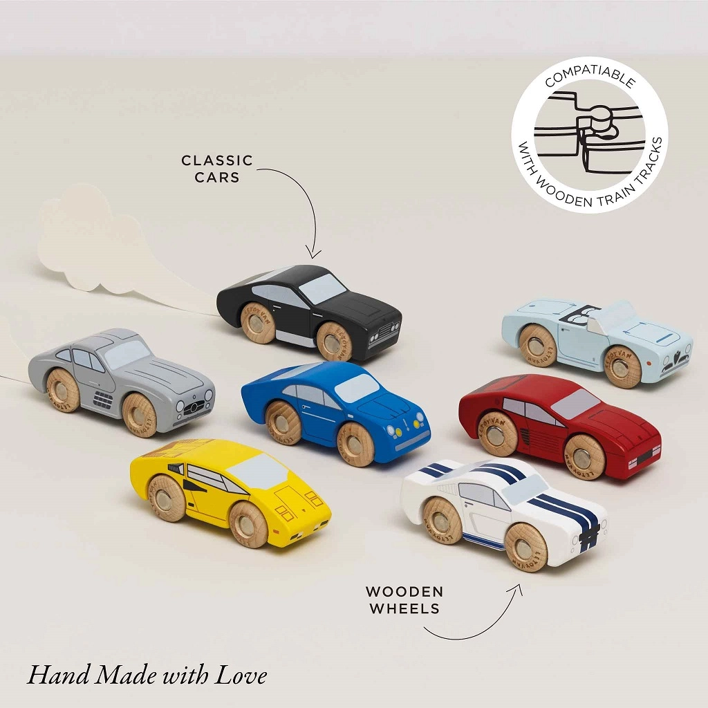Комплект дървени спортни колички Le Toy Van е идеалният подарък за малките любители на колите. Изработен от сертифицирана по FSC® дървесина, помага за развитието на когнитивните умения и координацията око-ръка, при това по екологичен и отговорен начин.