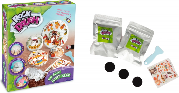 - 2× 60 g каменна маса, 3× магнитна тежест, стикери, шпатула, илюстрирано ръководство