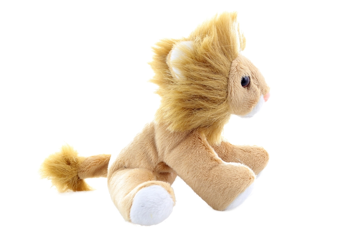 Вътрешните топчета осигуряват стабилно седене на плюшеното лъвче и го правят идеално за излагане на рафт или в детска количка.