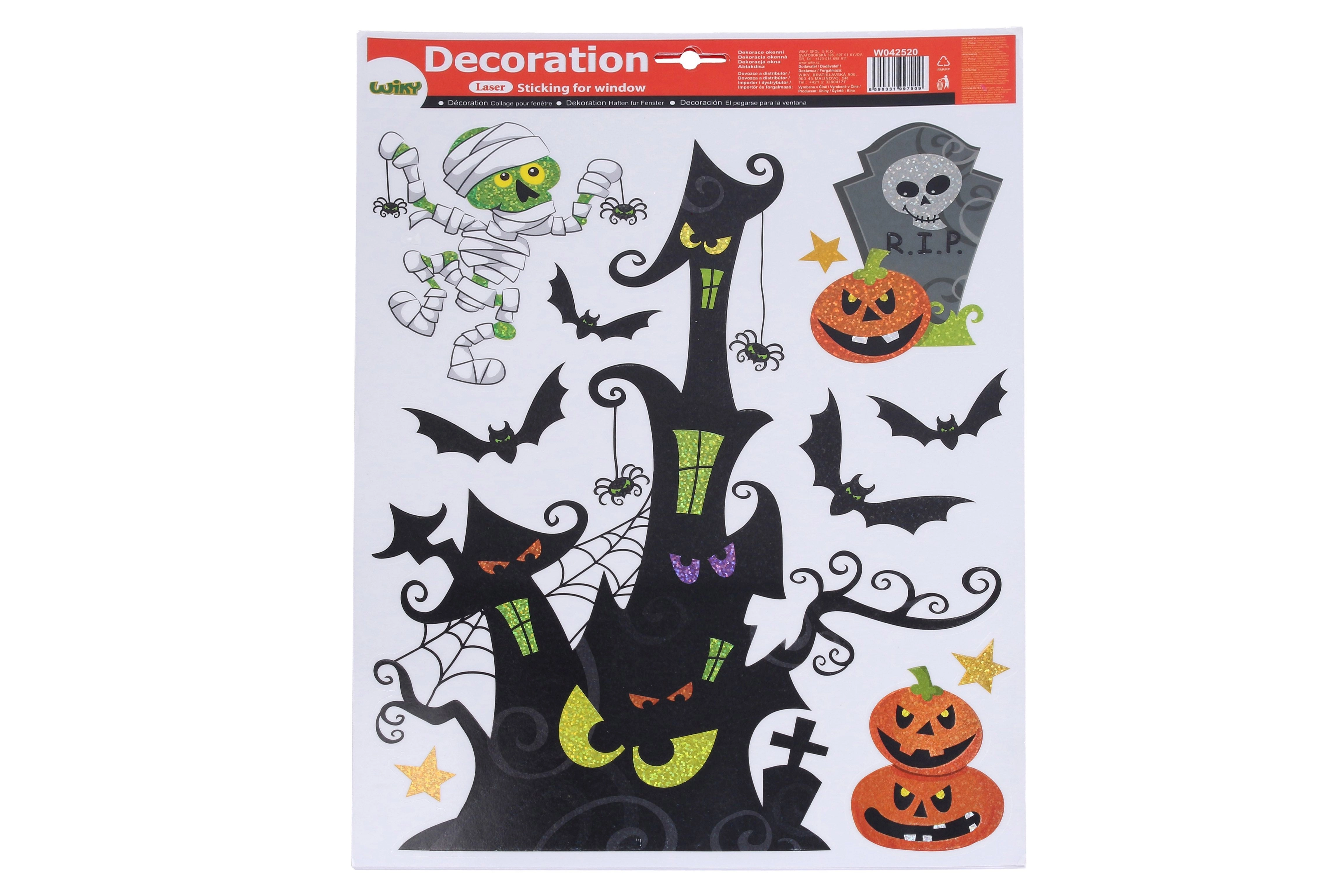 Създайте у дома страховита атмосфера с тези декорации за прозорци с размер 41 × 29 cm. Идеални за бърза украса за Хелоуин – лесно поставяне, множество мотиви и възможност за многократна употреба. Лесна инсталация, тематични мотиви HALLOWEEN и универсален размер за повечето прозорци.