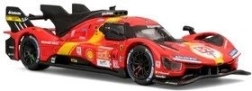 Този детайлен die-cast модел вярно пресъздава прототипа от категория LMH Ferrari 499P, който триумфира в легендарното състезание 24ч Льо Ман 2023. Реалистичните пропорции, острите линии на каросерията и автентичните състезателни елементи правят модела атрактивно попълнение за витрината.