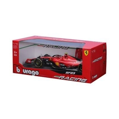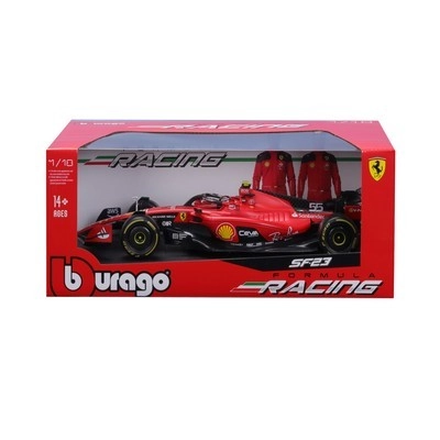 Официално лицензираният метален модел Bburago в мащаб 1:18 вярно пресъздава болида Scuderia Ferrari SF-23 (2023) със стартов номер 55. Включени са фигурка на Карлос Сайнц, автентична отборна окраска и прецизни детайли – идеален за колекционери и фенове на Формула 1.