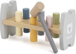 Цветните колчета и дървеното чукче тренират прецизността на удара, координацията око–ръка и гъвкавостта на китката – идеално за първи моторни успехи.