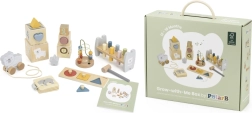 Безопасната изработка с гладки ръбове, издръжливите дървени елементи и интуитивните активности правят комплекта чудесен избор за ежедневна игра и като подарък. Практичната кутия с дръжка улеснява пренасянето и съхранението.