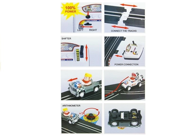 - Адаптер и допълнителни аксесоари, които осигуряват лесно сглобяване и работа на пистата.