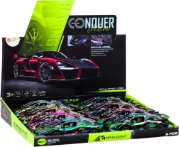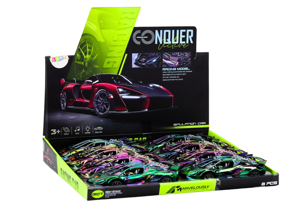Спортното автомобилче с уникален корпус тип хамелеон очарова с дъгов блясък и променящи се нюанси, които привличат вниманието при всяко движение. Интегрирани светлини и реалистични звуци подсилват игровото изживяване и превръщат всяка стая в състезателна писта.